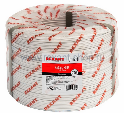 Кабель КСПВ 2х0,5 REXANT ГОСТ (бухта 500) (кратно 500)