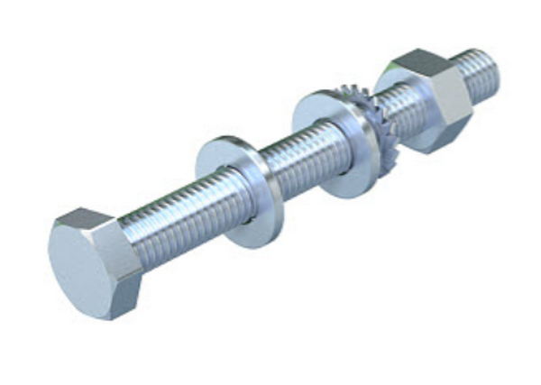 Болт с шестигранной головкой, шестигранной шайбой, подкладной шайбой и зубчатой шайбой.