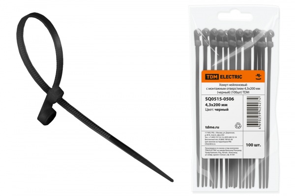 Хомут (стяжка) нейлон с отверстием под винт 4,8 х 200 черн. (100шт) P6.6 IEK