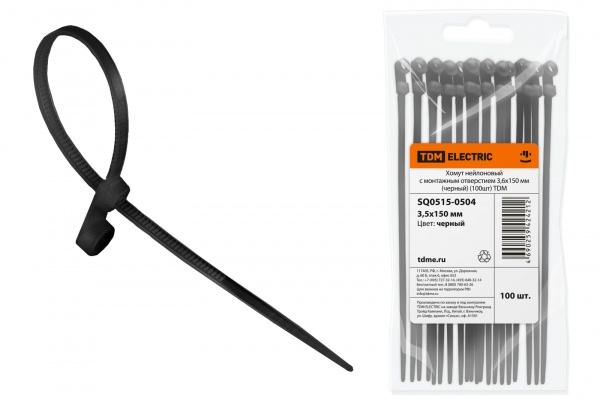 Хомут (стяжка) нейлон с монт. отверстием 3.6 х 150 черн. (100 шт) НЗЭТК