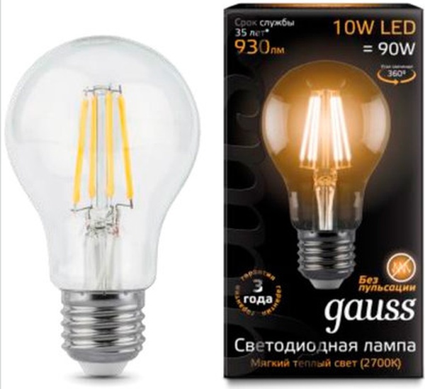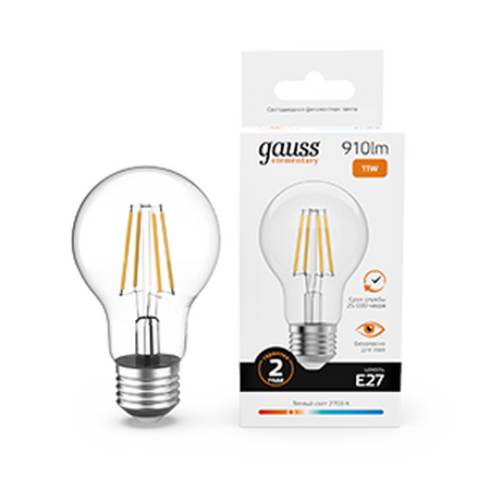 Светодиодная лампа Gauss А60 11Вт 910Лм 2700К Е27 филамент