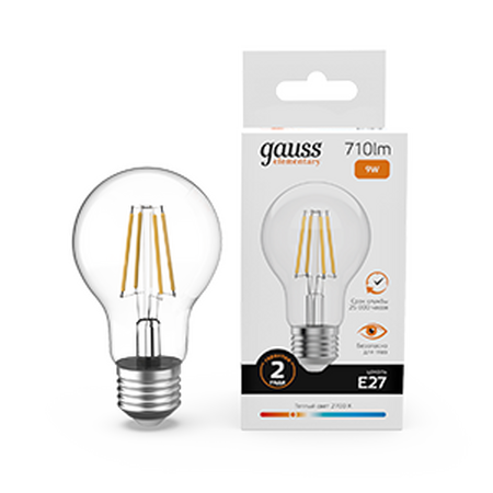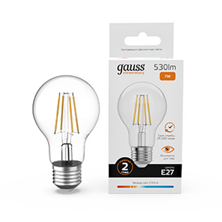 Светодиодная лампа Gauss А60 7Вт 530Лм 2700К Е27 филамент