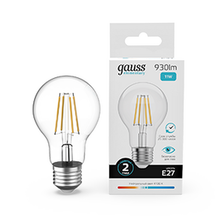 Светодиодная лампа Gauss А60 11Вт 930Лм 4100К Е27 филамент