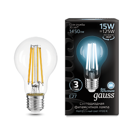 Светодиодная лампа Gauss А60 15Вт 1450Лм 4100К Е27 филамент