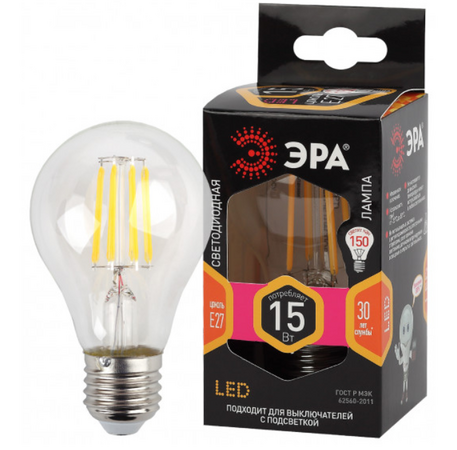 Светодиодная лампа ЭРА A60 15Вт 170-265В 2700К E27 филамент