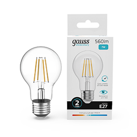 Светодиодная лампа Gauss А60 7Вт 560Лм 4100К Е27 филамент