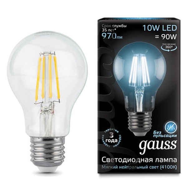 | Светодиодная лампа Gauss A60 12Вт 150-265В 4100К E27 филамент | 335,58 ¤/ шт. |