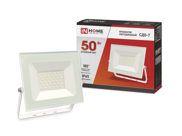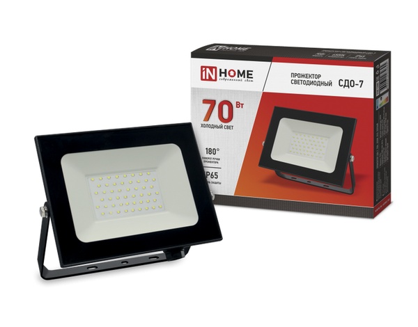 Прожектор светодиодный IN HOME 50Вт 6500К 4 000Лм IP65 230В 168х155х22 ЧЕРНЫЙ СДО-7