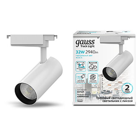 Светильник трековый Gauss цилиндр 32W 2940lm 4000K 180-220V IP20 75*216мм белый линза 36º LED 1/40
