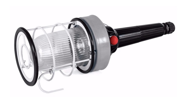 Защитное стекло - термостойкое, особопрочное, с высокой светопропускающей способностью, крепится внутри алюминиевого кольца и вкручивается в светильник. Для защиты стекла дополнительно применяется защитная решетка. Пластмассовая пустотелая рукоятка предназначена для переноса светильника. Внутри рукоятк