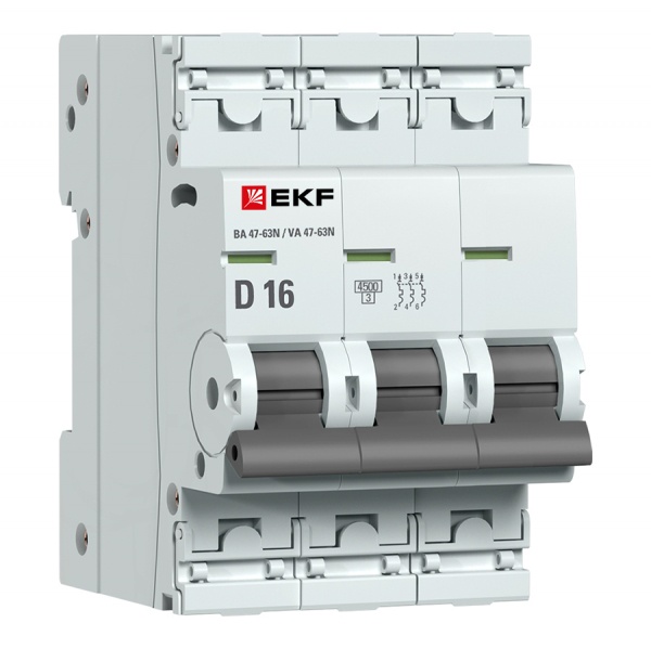 Выключатель автоматический 3П 16А характеристика D 4,5кА ВА 47-63N PROXIMA EKF (кратно 1)