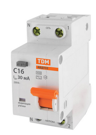 | Автоматический выключатель дифференциального тока 2П 16А 30мА TDM АВДТ 32 C16А 30мА 4,5кА | 594,40 ¤/ шт. |