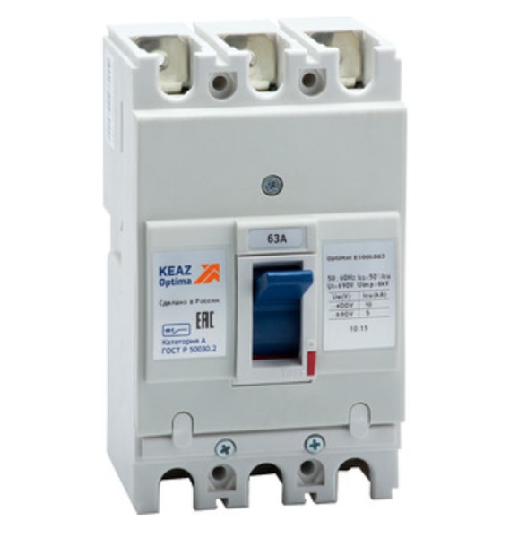 Автоматический выключатель 3П 63А 10 кА E100L063-УХЛ3 63А-630-400АС-10 кА КЭАЗ OptiMat