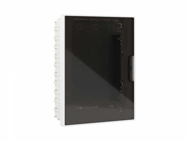 Щиток 36 мод встраиваемый слаботочный FRAME, белый, с тонированной дверцей, с монтажной платой, в комплекте с 2 розетками Viva (арт. 45005) и 2 коробками PDD (арт. 10033) (кратно 1)