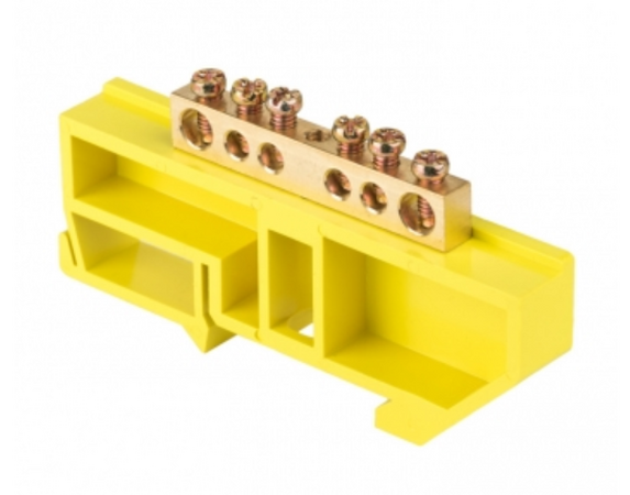 Шина нулевая 6х9мм 6 отверстий с изолятором на DIN-рейку латунь желтый EKF PROxima (кратно 1)