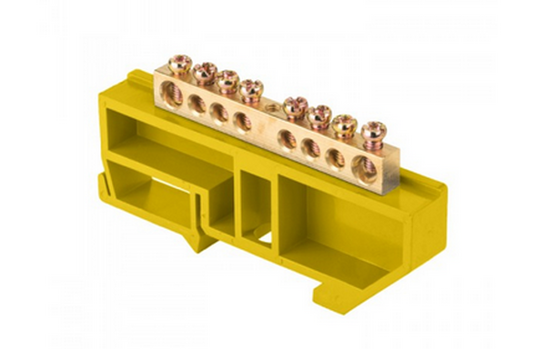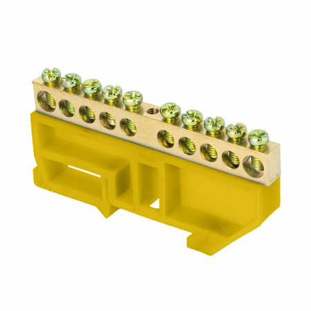 Шина "0" N (6х9мм) 10 отверстий латунь желтый изолятор на DIN-рейку EKF PROxima (кратно 1)