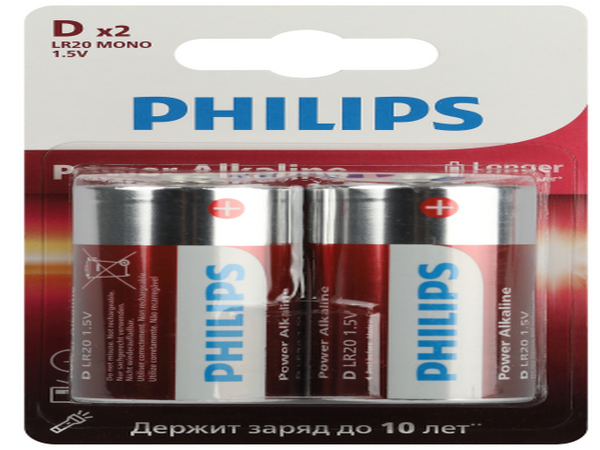 Батарейка D Philips LR20P2B/51 "D" алкалиновые LR20-2BL Power (2/24/48/3360) (кратно 2)