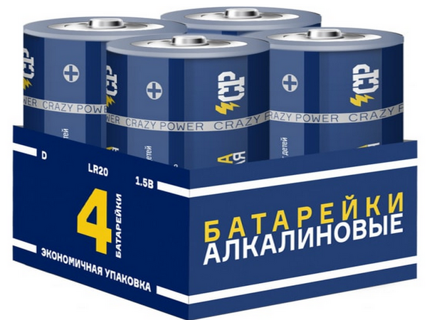 Батарейка D CRAZYpower Алкалиновые LR20 (кратно 4)