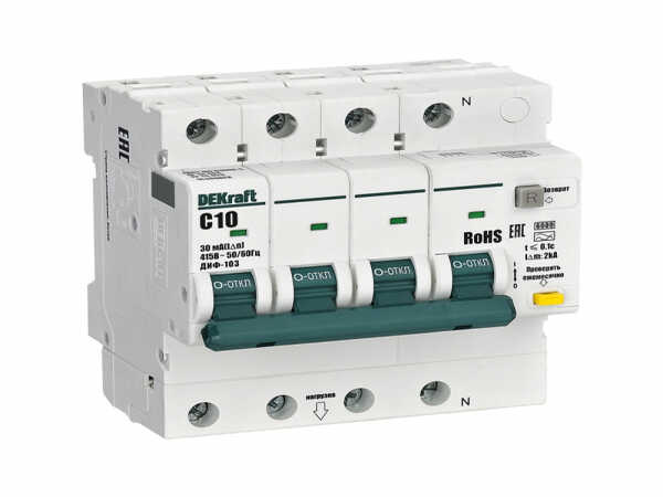 | Автоматический выключатель дифференциального тока 3П+N 10А 30мА DEKraft тип AC характеристика С АВДТ ДИФ-103 6кА РАСПРОДАЖА | 4 715,30 ¤/ шт. |